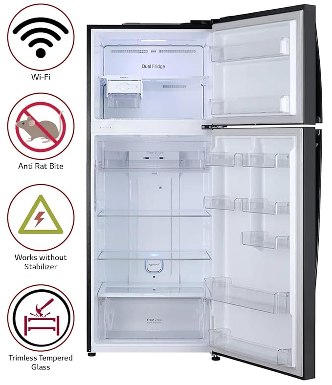 LG 471 L 3 Star Frost Free Inverter, Wi-Fi Double Door Refrigerator (T502FES3, Black, Ebony Sheen, Convertible)