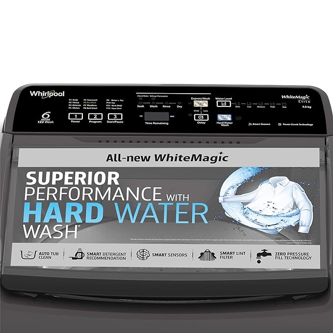 Whirlpool 7.5 kg 5 Star, Hard Water wash Fully Automatic Top Load Washing Machine Grey (WHITEMAGIC ELITE 7.5 GREY 10YMW)